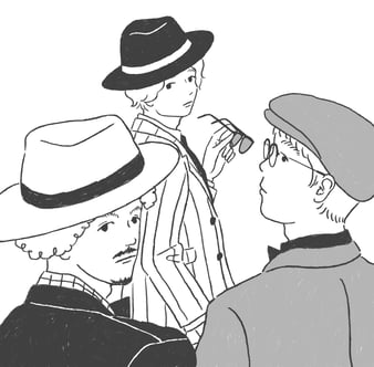 同じポーズで本を読むふたりを、それぞれの個性が出るようにを描きました。