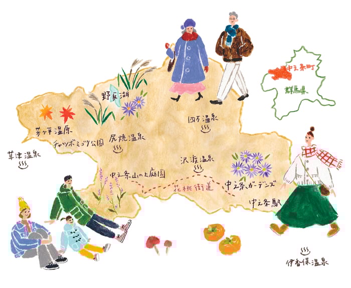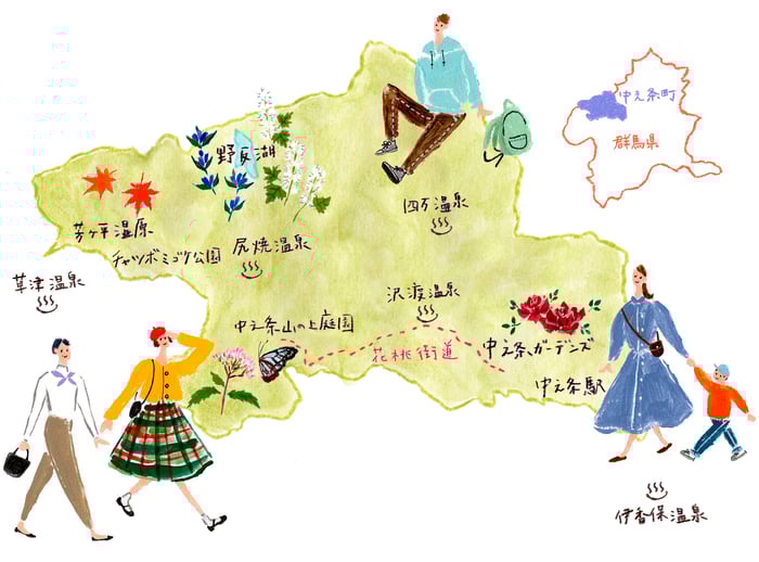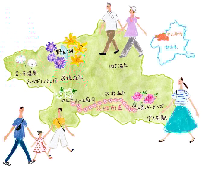 ■中之条町花通信(冊子)「はなな 」裏表紙マップイラストVol.1〜Vol.3