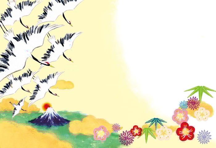 鶴、富士山、和柄をテーマに描きました。